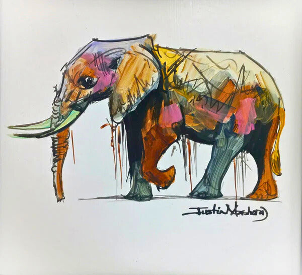 Echo of the Plains captures the soulful presence of Africa’s most beloved giant. Layers of colour blend into waves of emotion and movement. Each brushstroke feels alive, echoing the rhythm of the land. The elephant’s form radiates both power and serenity. Muted tones of sienna and teal evoke dusk settling over the savannah. There is a quiet poetry in its posture — ancient and wise. The artist invites the viewer into its stillness, where memory lingers in every line. It is both portrait and prayer to the wild. A magnificent piece for those who revere life’s deeper connections.